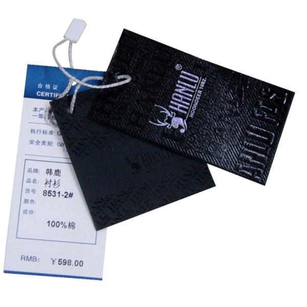 Black Fake Leather Paper Clothing Hang Tags For Men's Garments Images |